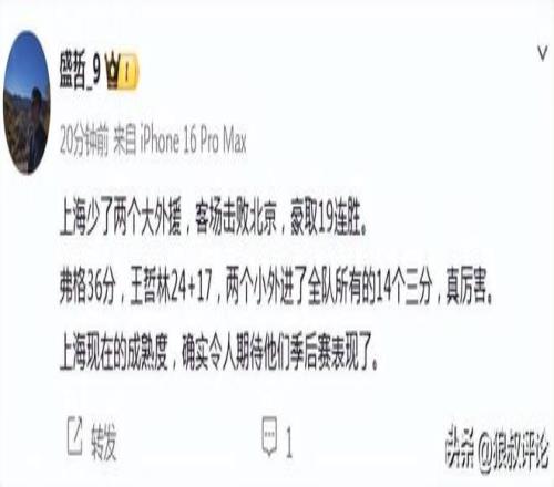 賽后,北京男籃主場遭到上海男籃雙殺引發球迷和媒體的熱議。