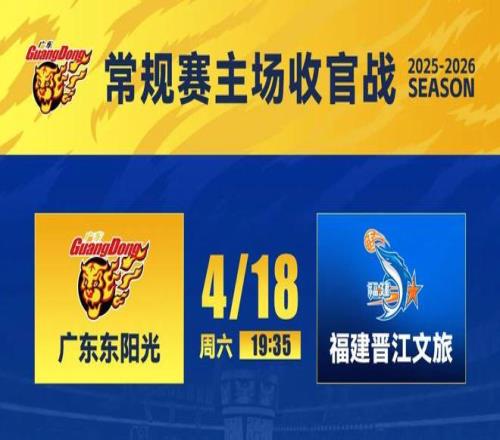 4月18日,CBA常規賽第40輪,廣東東陽光將迎來本賽季常規賽主場收官戰,對手為福建晉江文旅男籃。上賽季2次交鋒,華南虎保持全勝。