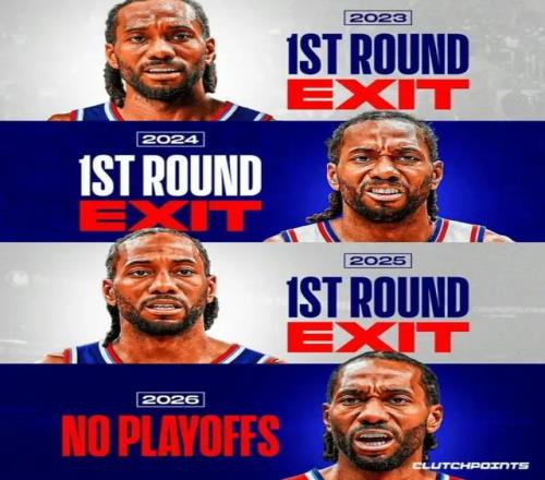 這些年,快船已經為倫納德嘗試了多種排列組合,但快船戰績始終沒有起色。2022年附加賽,排名第8的快船連輸兩場出局,隨后三年連續首輪游,今年快船附加賽第一輪就出局,隊史三場附加賽全敗。