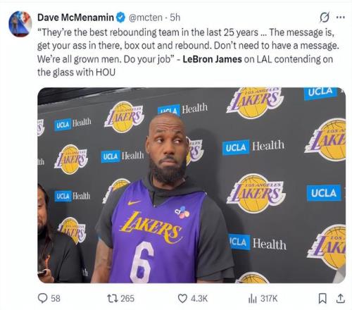 這個言論出爐很明顯是為了影響勒布朗備戰季后賽,湖人VS火箭的首輪即將開打,加上里夫斯、東契奇在首輪大概率要報銷,41歲的勒布朗是湖人唯一的依仗,文胖想要亂其心智。
