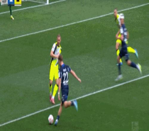 第90+13分鐘,布蘭特任意球射門之前,科貝爾上前現場輔導