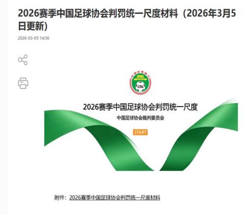 需要指出的是,在本賽季中超聯賽開始前中國足協在3月5日就公布了今年足協對各級聯賽的判罰統一尺度標準。