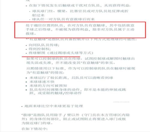 根據2025-26足球競賽規則,處于越位位置的隊員在對方隊員有意觸球的情況下不被視為獲利得益,其中包括故意手球之后的得球。